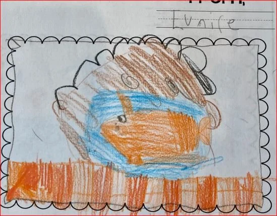 When Norman saw that drawing, he froze. Then he hid. And finally, he mustered his courage and swam closer. Scroll down for his response. To read Norman’s answer? Scroll down . . .