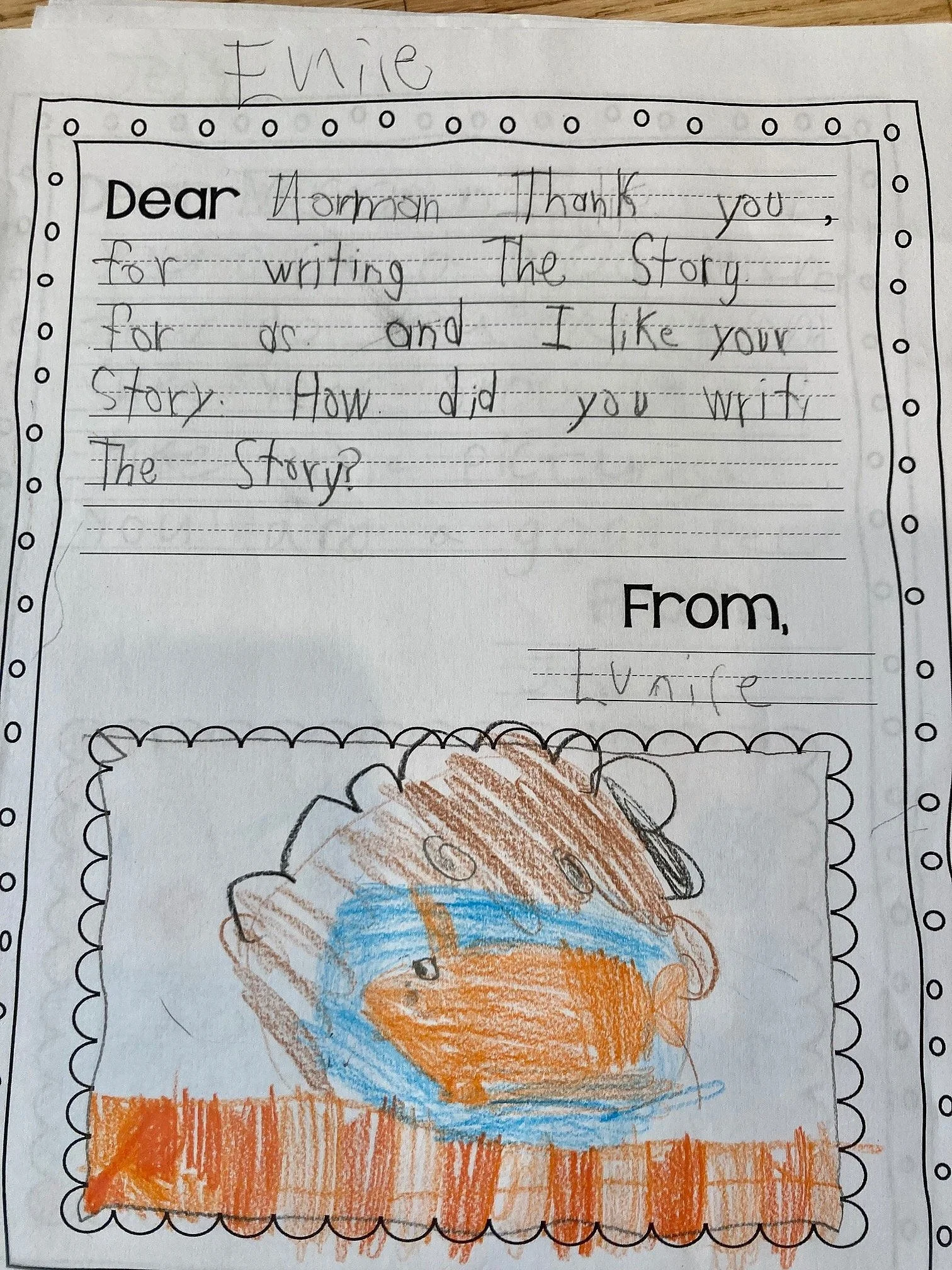 Miss Racz’s first graders sent an email after viewing the Norman One Amazing Goldfish read-aloud on World Read Aloud Day #WRAD