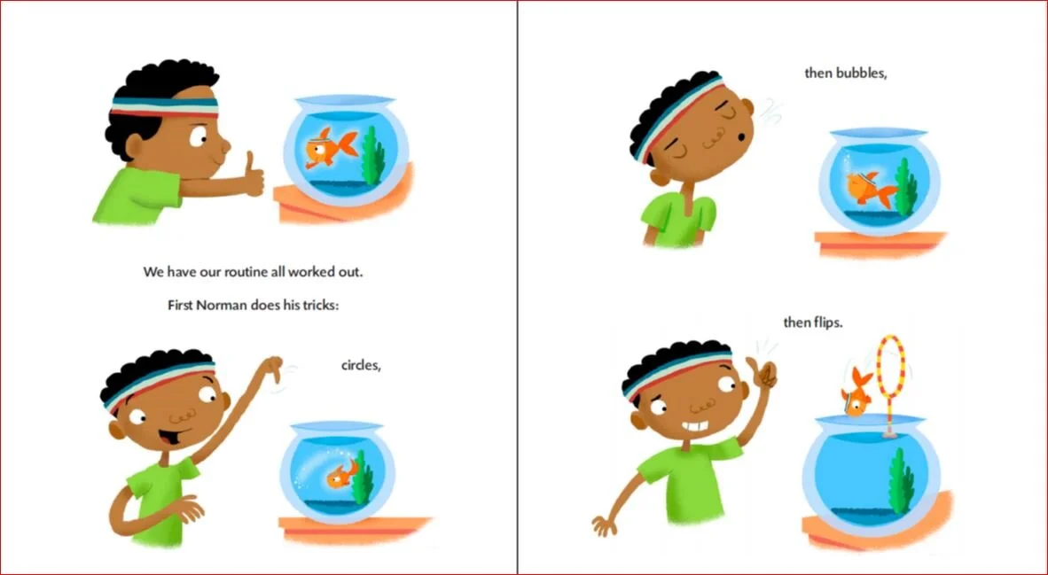 Say kids, if you’ve read Norman One Amazing Goldfish, then you know that along with playing “School” & “Ring Around the Diver” Norman does lots of tricks. Those tricks are not make-believe, they are tricks humans—like you—can teach your goldfish to do. Here’s a step-by-step instruction for teaching goldfish to eat from your hand, swim through hoops and more from wikihow.com: How To Train Goldfish.